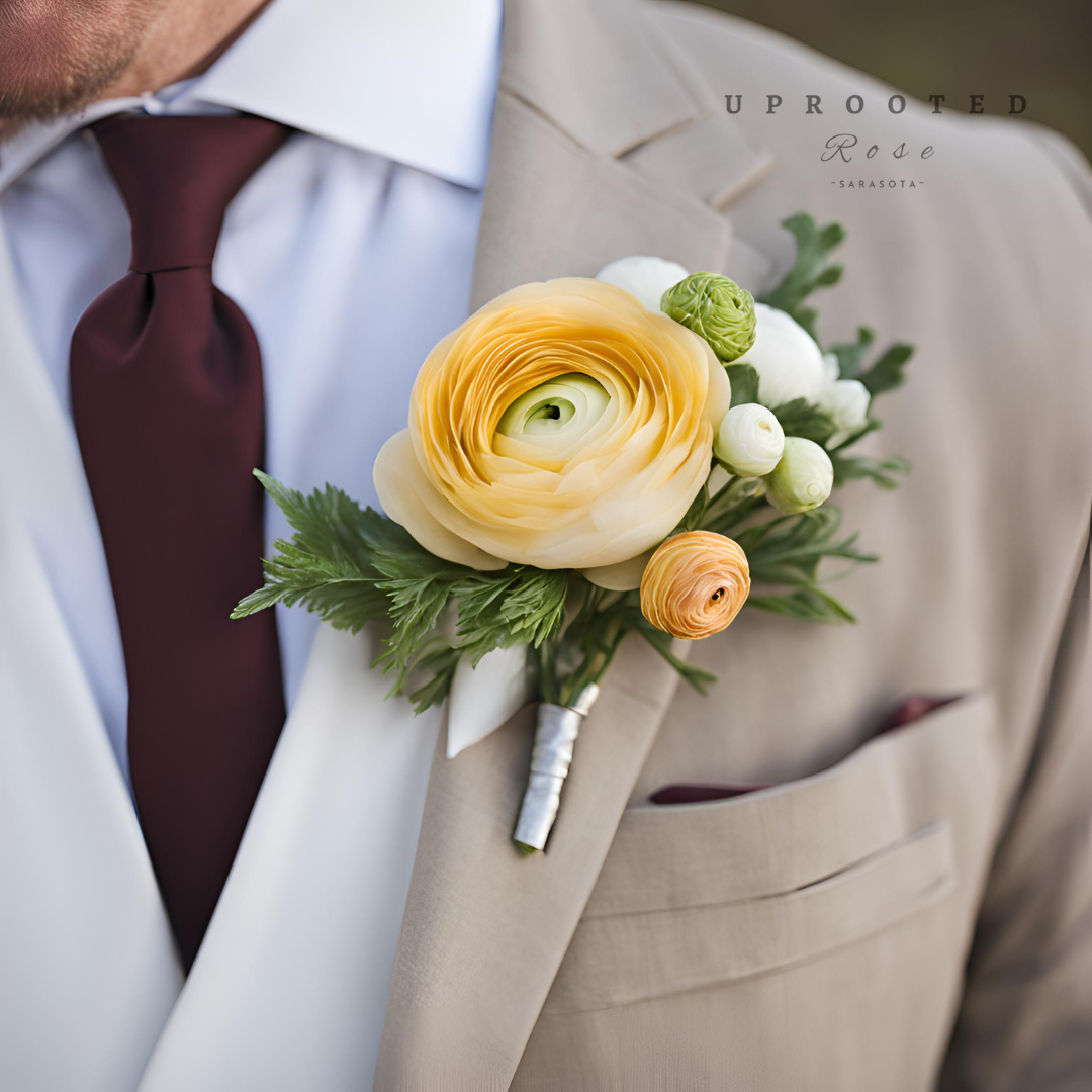 Enhance your wedding party's look with our beautiful boutonnieres and corsages. Featuring exquisite florals, our boutonnieres and corsages add a touch of elegance to any wedding ensemble. Let us help you add the perfect finishing touch to your special day.